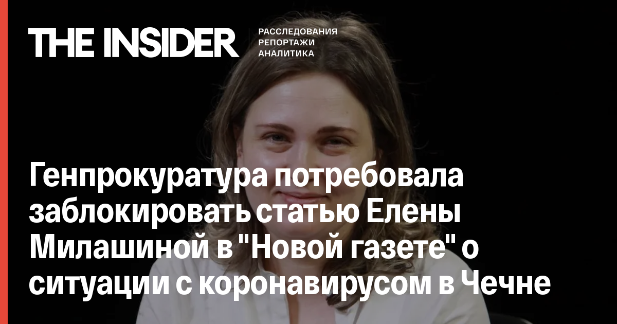 Генеральная прокуратура РФ потребовала от Роскомнадзора заблокировать материал специального корреспондента «Новой газеты» Елены Милашиной, в котором журналистка описала ситуацию с коронавирусом в Чечне. Об этом сообщила редакция издания.