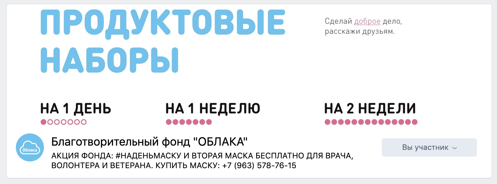 Или другой пример: фонд «Облака» обновил обложку и добавил актуальные виджеты «ВКонтакте».