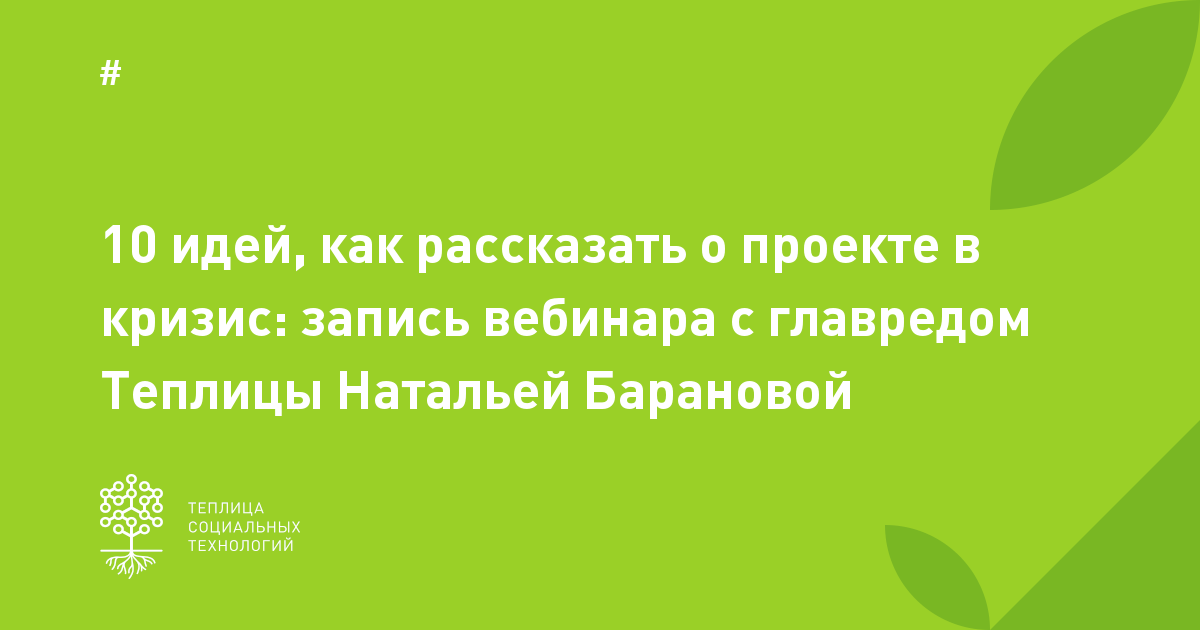 10 идей, как рассказать о проекте в кризис: запись вебинара с главредом Теплицы Натальей Барановой
