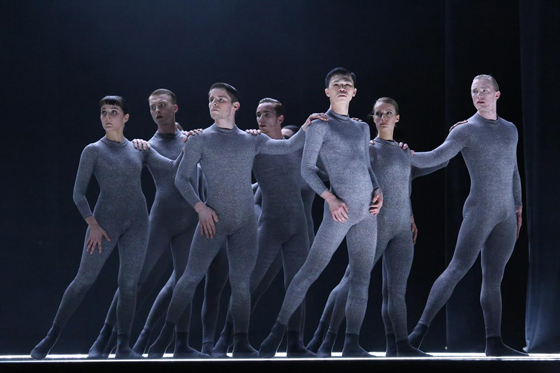 © Dance Open «Болеро» Мауро де Кандиа не столь сентиментален и не столь оптимистичен. На исхоженной тысячей предшественников территории «Болеро» Равеля ему привиделся маленький техногенный адок. Де Кандиа, по традиции сам выступающий художником спектакля, заполняет сцену дымом, включает неоновые лампы и выпускает на сцену группу андроидов. Танцевальная труппа Театра Оснабрюка прежде выступала на Dance Open с другой работой своего руководителя де Кандиа (похоже, склонного к популярной классике). «Болеро» было частью программы, посвященной юбилею Баухауса: идеологи постановки даже увязали 18-кратное повторение музыкальной темы у Равеля с идеями Кандинского (в эфире 20 апреля).