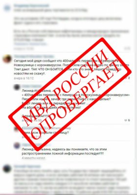 «Сегодня мой дядя сообщил что 400 человек перевели из Кемерово в Новокузнецк с коронавирусом. Попросила снять на видео по закону за это 7 лет дают. ТАК ЧТО ОН БОИТСЯ. Если кто что знает пишите правду по новостям не скажут», — написала женщина в группе «ВКонтакте». Орфография и пунктуация оригинального текста сохранена.