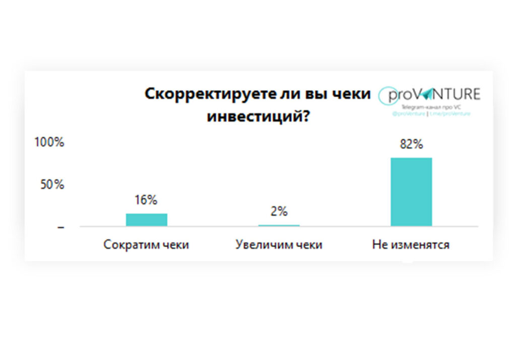 С другой стороны, 82% российских инвесторов считают, что текущий кризис не повлияет на чеки инвестиций. 16% планируют чеки сократить.