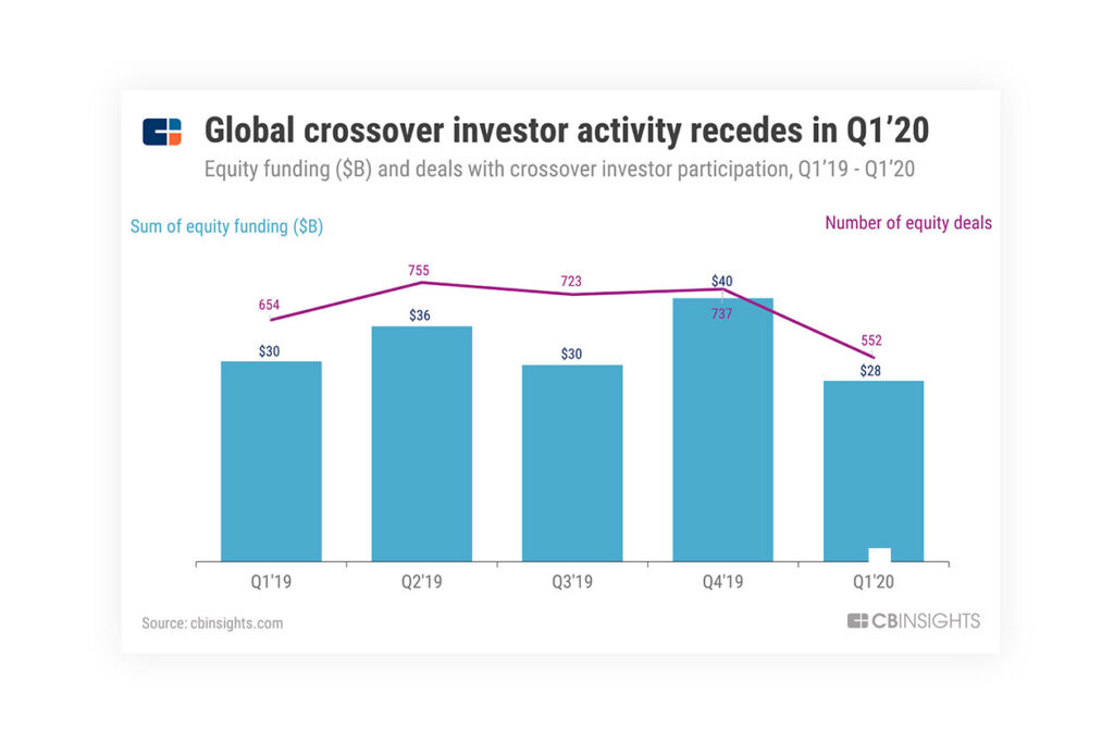 По данным аналитической компании CB Insights, общий объем финансирования частных компаний сократился в первом квартале 2020 года до $28 млрд (-7% год к году), число сделок — до 552 (-16%). В сравнении с четвертым кварталом 2019 года падение еще более ощутимое: -30% в общем объеме сделок, -25% в их числе.