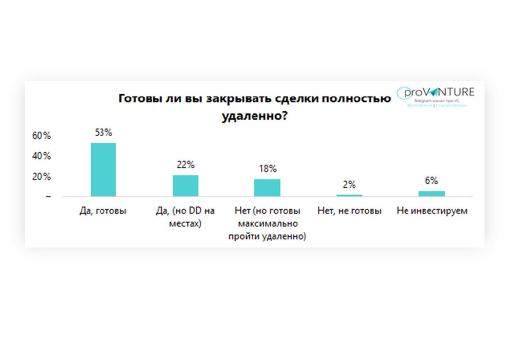 В США — иначе: 78% инвесторов не будут закрывать сделки по видеосвязи. Вероятно, российским инвесторам было проще перестроиться из-за того, что в последние годы они активно участвуют как соинвесторы в глобальных сделках.