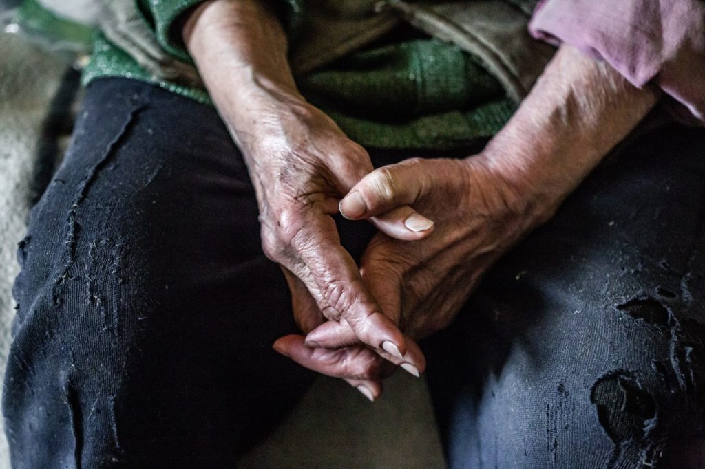 «Ой, не фотографируйте меня. Я сильно страшная», — говорит Нэля Николаевна и поправляет шапку.