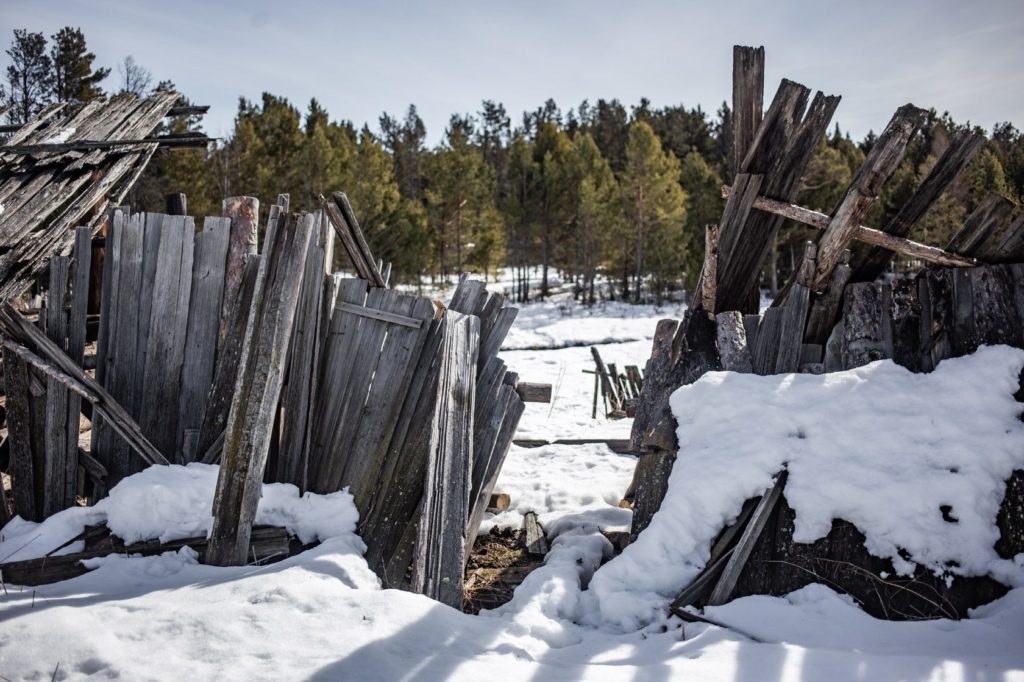 Цвет умирающей деревни — выбеленный серый. Цвет старого дерева. Все заборы и дома в Таёжном построены из дерева. Даже крыши покрыты не металлом или шифером, а деревянными досками.