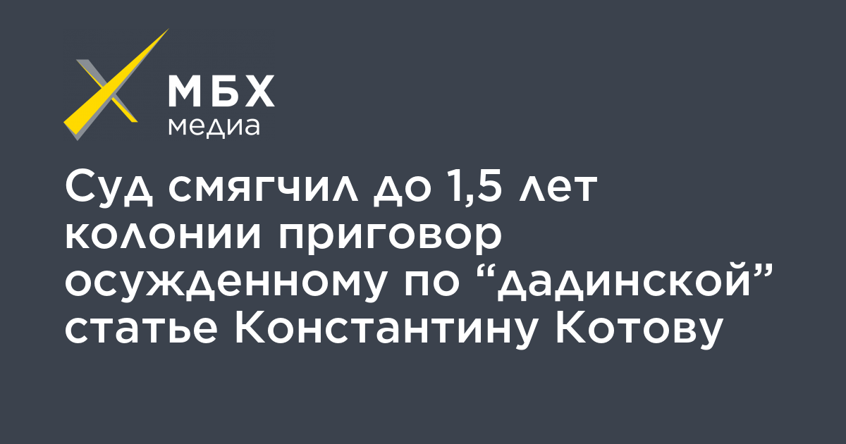 Мосгорсуд смягчил до 1,5 лет колонии приговор осужденному по «дадинской» статье Константину Котову. Об этом сообщил «МБХ медиа» адвокат Михаил Бирюков.