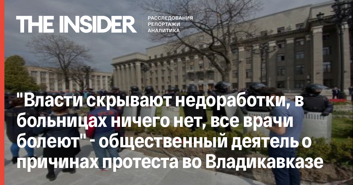 Некоторые участники митинга считают, что коронавируса нет, другие с этим несогласны, но все сходятся в том, что власти скрывают объективную информацию. Они скрывают свои недоработки, то, что в больницах нет ничего, и почти во всех больницах врачи все позаболевали и сейчас людей некому лечить. Заведующая отделением КБСП, это центральная больница, которую специально освободили под коронавирусных, лежит дома в тяжелом состоянии, не стала сама туда ложиться. И не она одна – несколько врачей, обслуживающий персонал. Заболели и в другой больнице, которая главная республиканская больница, РКБ так называемая, там изначально эта инфекция вспыхнула и эту информацию скрыли. Там была ситуация такая, что в приемном отделении был хирург инфицирован, который тут же уволился почему-то. Больной в кардиологии, который заразил молодежь. Целый этаж кардиологии пришлось эвакуировать в санаторий. В Беслане, откуда пошли первые случаи, сразу не положили в районную больницу, в которой тоже всех перезаражали, там сейчас три врача лежат в тяжелом состоянии в больнице и неизвестно, сколько там ещё инфицированных. Очень тяжелая ситуация.