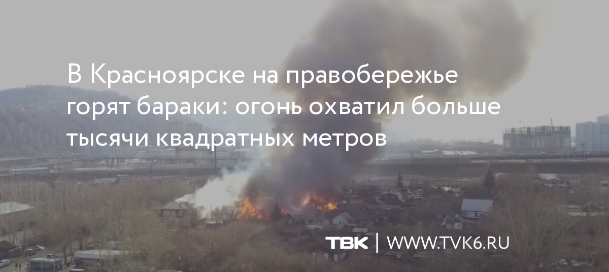 В Красноярске на правобережье горят бараки: огонь охватил больше тысячи квадратных метров