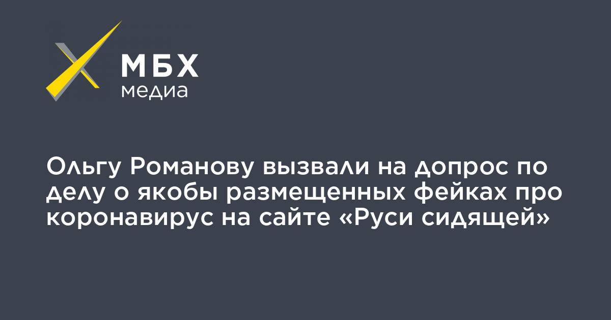 Следователь Валдайского межрайонного отдела СО СУ СК по Новгородской области направил запрос с приложением повестки на допрос в качестве свидетеля директору Благотворительного фонда помощи осужденным и их семьям — «Русь Сидящая» Ольге Романовой в рамках уголовного дела о распространении недостоверной информации о коронавирусе (207.1 УК). Об этом «МБХ медиа» сообщил адвокат «Правозащиты Открытки» Сергей Бадамшин, защищающий интересы Романовой.