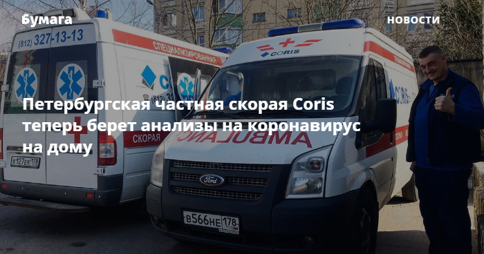 С 20 апреля частная скорая помощь Coris предоставляет услугу забора биоматериалов для тестирования на COVID-19 методом ПЦР на дому. Об этом «Бумаге» рассказал генеральный директор и главный врач клиники Лев Авербах.