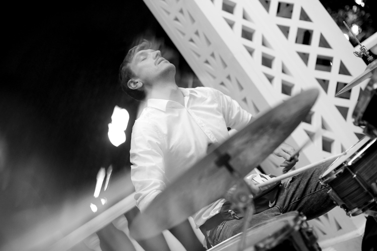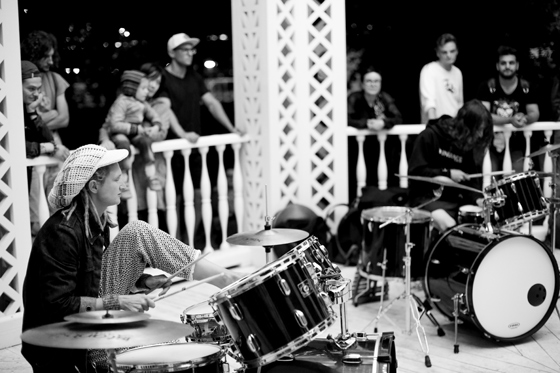Идея собрать такой состав — квартет лучших московских импровизирующих барабанщиков — родилась спонтанно. Летом 2018 года парк Горького предложил мне сделать парочку бесплатных концертов в некоторых его локациях — куполе Alpbau в «Музеоне» и его модернистском собрате — Ажурной беседке. Почему-то сразу захотелось увидеть в округлом пространстве беседки живой диалог музыкантов — громкий, зрелищный, обязательно на повышенных тонах. В итоге в голове родилась идея собрать квартет, состоящий из одних только барабанщиков, — чтобы их ударные установки встали кругом, а музыканты могли бы постоянно переглядываться друг с другом, общаясь еще и с помощью мимики.
