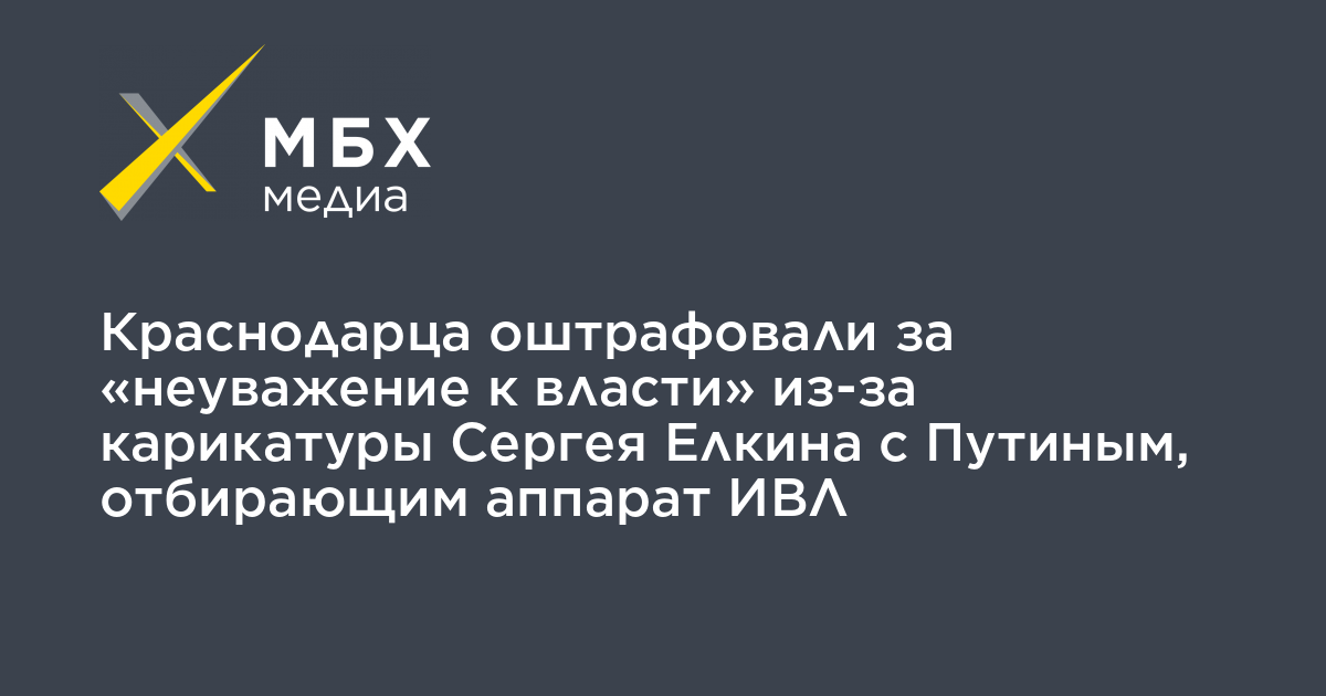 Лабинский районный суд Краснодарского края оштрафовал на 30 тысяч рублей местного жителя Илью Юркова по статье о «неуважении к власти» (часть 3 статьи 20.1 КоАП) из-за карикатуры Сергея Елкина, на которой изображен Владимир Путин, отбирающий аппарат ИВЛ у больного. Соответствующее постановление «МБХ медиа» обнаружило в картотеке суда.