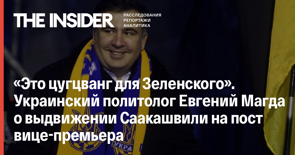 Директор Института мировой политики в Киеве Евгений Магда рассказал The Insider, что назначение Саакашвили на должность вице-премьера в любом случае ухудшит позиции Зеленского.