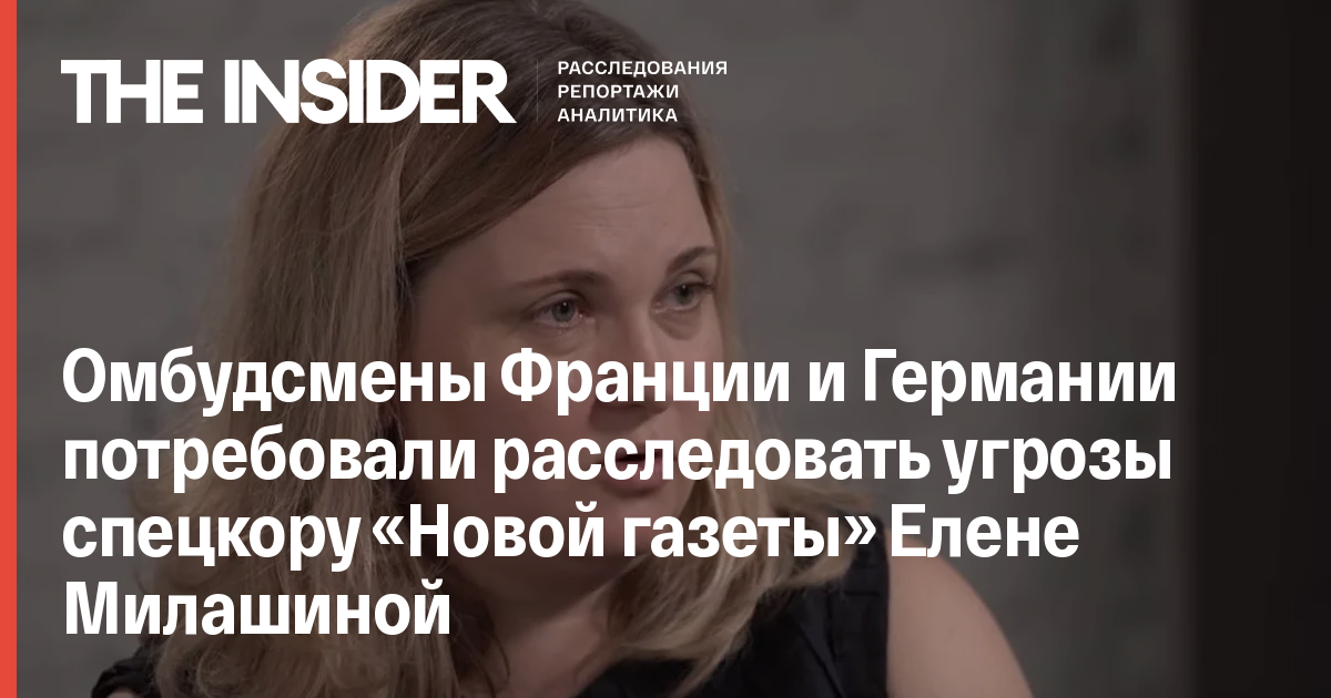 Омбудсмены Франции и Германии потребовали расследовать угрозы спецкору «Новой газеты» Елене Милашиной