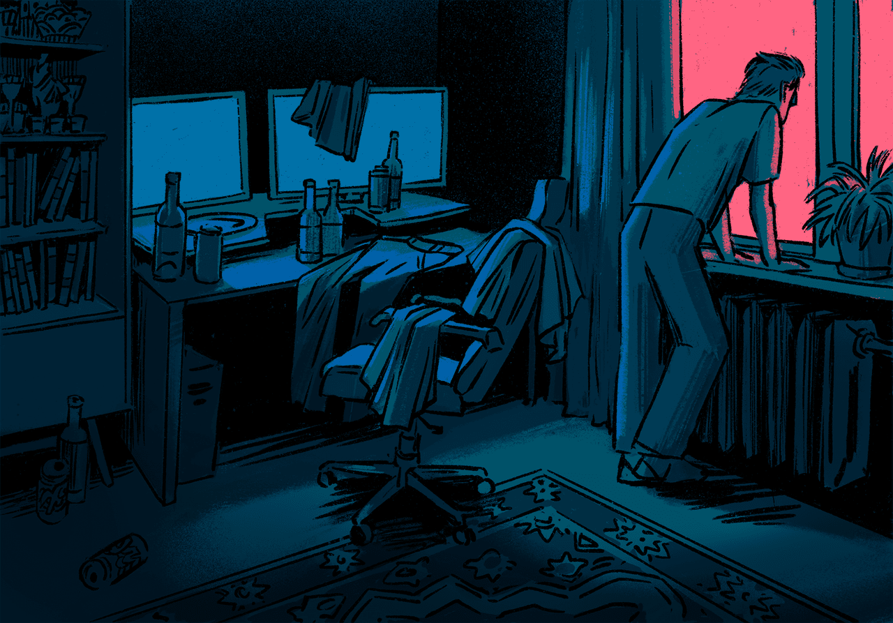 В конце недели я опять напился и подумал, что просто перестану ходить в офис. А с новой работой — тем более что она домашняя — разберусь. Тут была другая проблема: работать дома в тысячу раз тяжелее. И ещё сложнее не огребать за безделье: мне писали и требовали результатов. Приходилось искать ответы, одновременно отбиваясь от сообщений и звонков со старой работы с вопросами, куда я пропал.