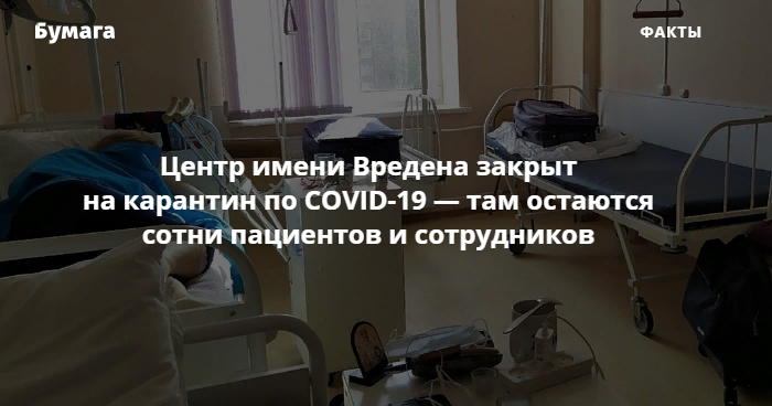 В центре остаются около 500 пациентов — они жалуются, что больные COVID-19 лежат в одних палатах со здоровыми. А врачи сообщают о нехватке средств защиты. «Бумага» рассказывает, что известно о ситуации в институте имени Вредена.