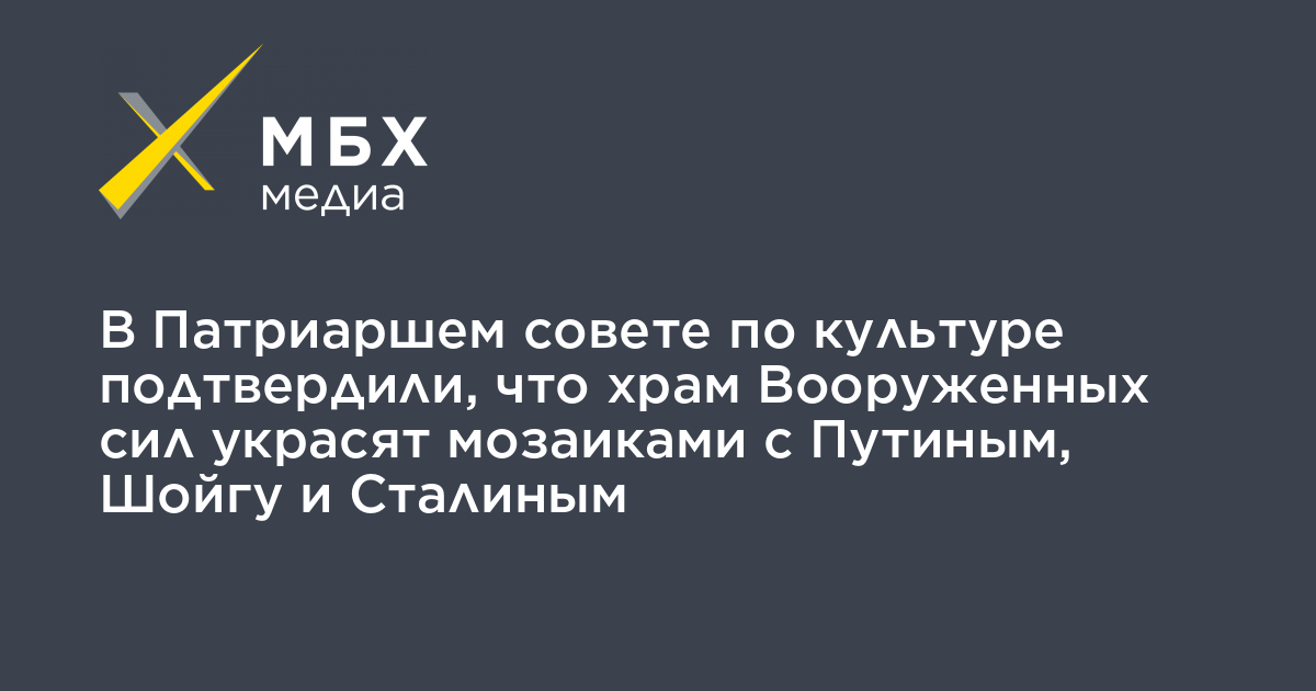 Ранее «МБХ медиа» сообщало, что в храме вооруженных сил России, строительство которого заканчивается в подмосковном парке «Патриот», появятся мозаики с изображениями Владимира Путина, Сергея Шойгу и Иосифа Сталина.