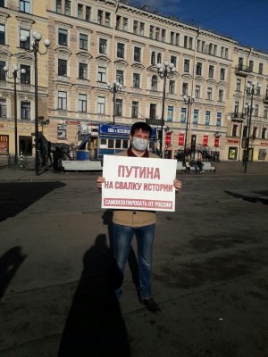 Полицейские задержали Мусина с плакатом «Путина на свалку истории». Позднее в отделе полиции этот плакат изъяли в качестве «предмета правонарушения». Активиста доставили в ОП № 16, где составили протокол по статье о неповиновении законному требованию представителя власти (ст. 19.3 КоАП) и по статье о нарушении требований актов о режиме повышенной готовности (ст. 8-6-1 КоАП Санкт-Петербурга).