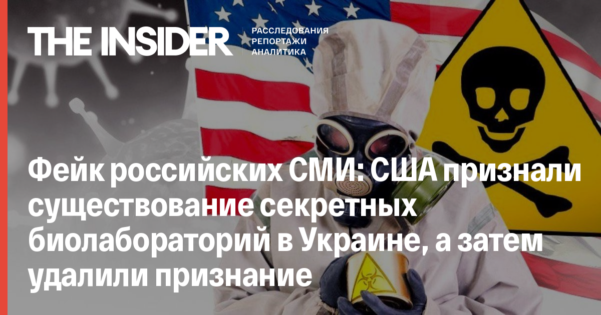 Фейк российских СМИ: США признали существование секретных биолабораторий в Украине, а затем удалили признание