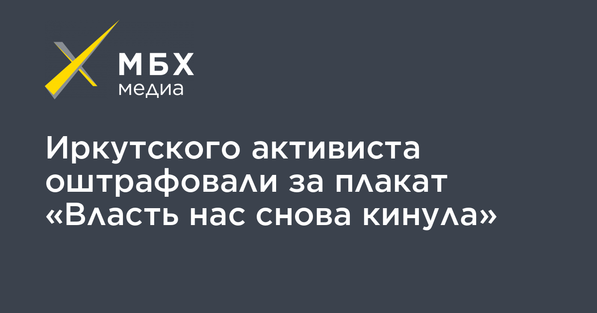 Активиста из Иркутска Павла Харитоненко оштрафовали на тысячу рублей за плакат «Не жди помощи, власть нас снова кинула», сообщает «Сибирь. МБХ медиа».
