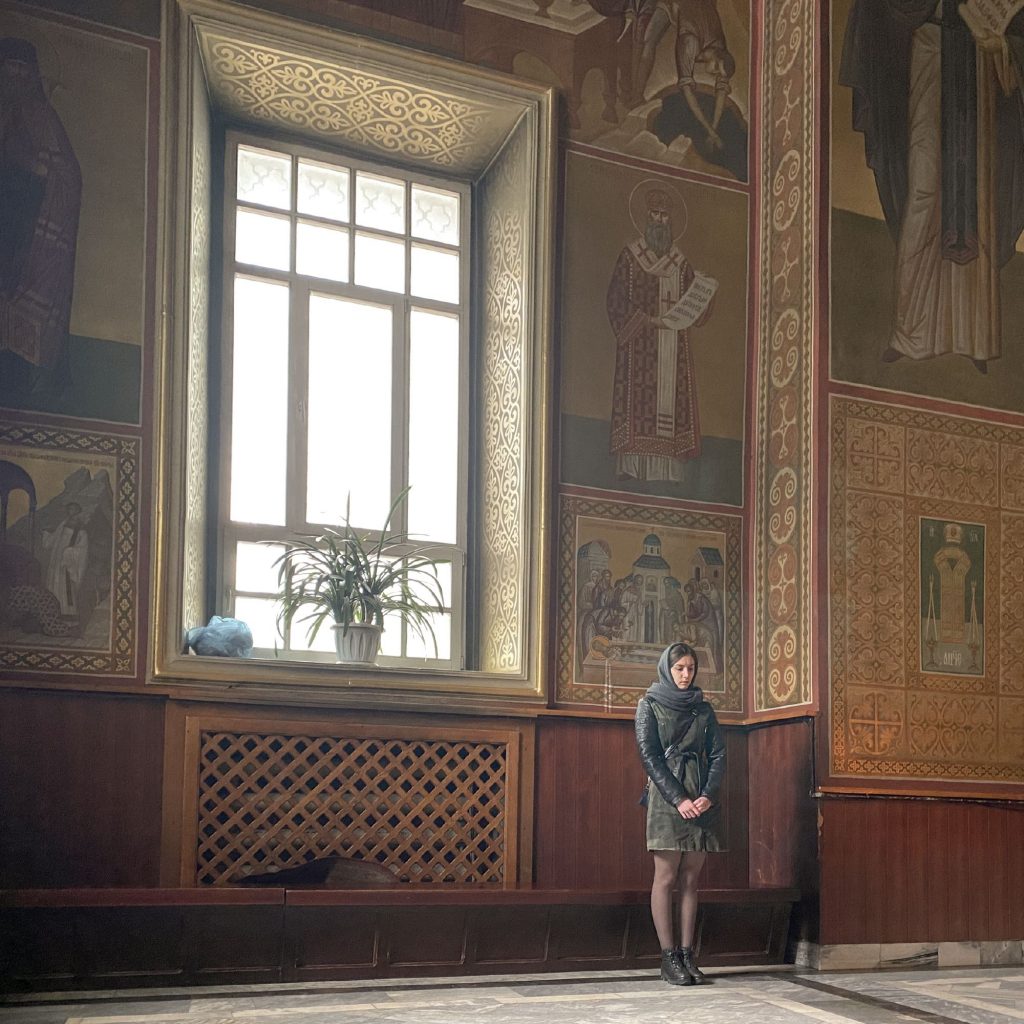 «У нас каждый час колокольный звон. Поначалу он сильно раздражал, а теперь очень нравится, — признается Диана Грищук, общительная девушка с дредами. — Когда я поступила на теологию, взгляды у меня были коммунистические. До сих пор над кроватью советский флаг висит. Я была конкретным неформалом и атеистом. Репостила все эти мемы про священников на дорогих машинах. Думала, они все такие. А ведь это не значит, что священники сами эти машины покупают. У многих из них большие семьи, важно возить детей с комфортом».