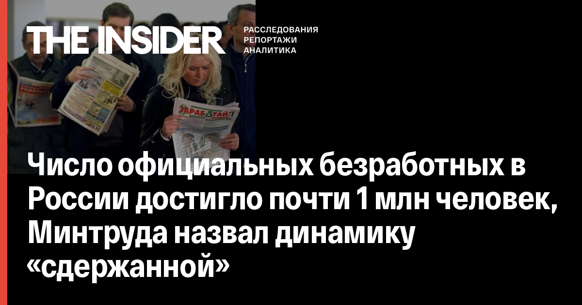 Число официальных безработных в России достигло почти 1 млн человек, Минтруда назвал динамику «сдержанной»