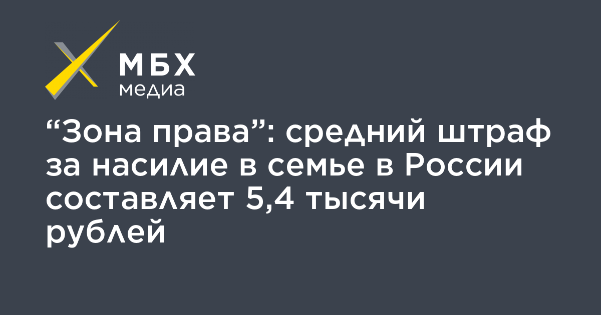 «Зона права»: средний штраф за насилие в семье в России составляет 5,4 тысячи рублей