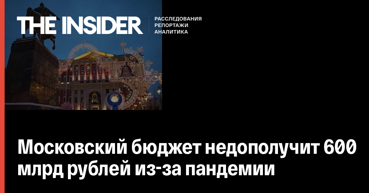 Московский бюджет недополучит 600 млрд рублей из-за пандемии