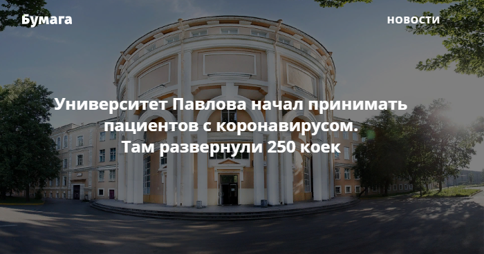 Первый медицинский университет имени Павлова начал принимать пациентов с коронавирусом. Об этом пишут «Фонтанка» и «Петербургский дневник» со ссылкой на комитет по здравоохранению.