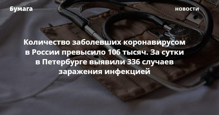 Всего в стране с начала эпидемии COVID-19 заболели 106 498 человек. За прошедший день выздоровели 1333 пациента и умер 101 человек. За все время в России от коронавируса вылечились 11 619 человек, умерли 1073.