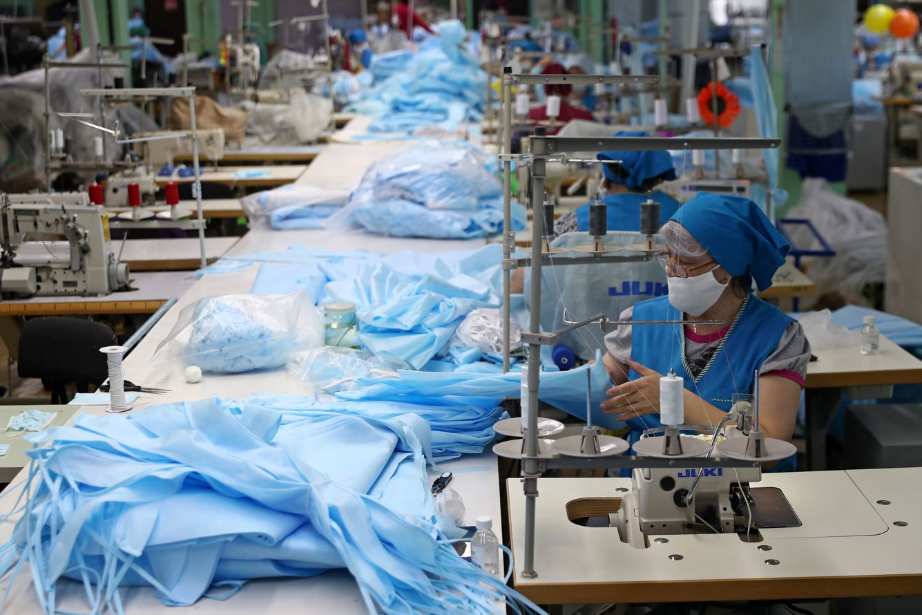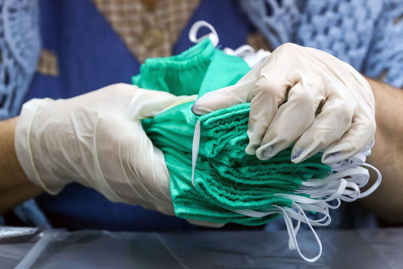 Александр Рюмин / ТАСС / Scanpix / LETA Изготовление защитных масок на фабрике «Старт» во время пандемии коронавируса. Рязань, 2 апреля 2020 года