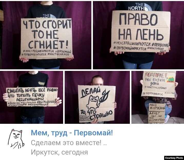 Иркутские анархисты, активисты открытого пространства "Черный квадрат" для своей традиционной первомайской монстрации сегодня выбрали новый формат – "флешмоб в соцсетях". Его общий лозунг – "Мем, труд – Первомай!". Любой желающий может сделать фото со своим лозунгом на злобу дня и разместить его под хештегами "#монстрация2020 #первомайИркутск #монстрацияИркутск". Одна из участниц, гражданская активистка Наталья Максианович для флешмоба выбрала фразу "Короны нет давно, а жизнь в стране…NO".