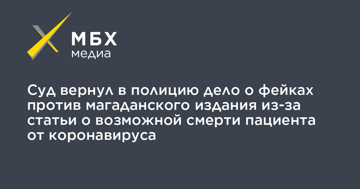 Суд вернул в полицию дело о фейках против магаданского издания из-за статьи о возможной смерти пациента от коронавируса
