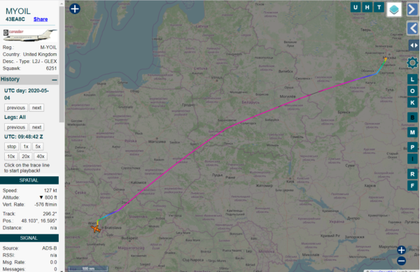 Бизнес-джет Bombardier Global 6000 с бортовым номером M-YOIL, которым пользуется глава «Роснефти» Игорь Сечин, улетел в Вену. Об этом свидетельствуют данные ADS-B Exchange, обнаружило «МБХ медиа».