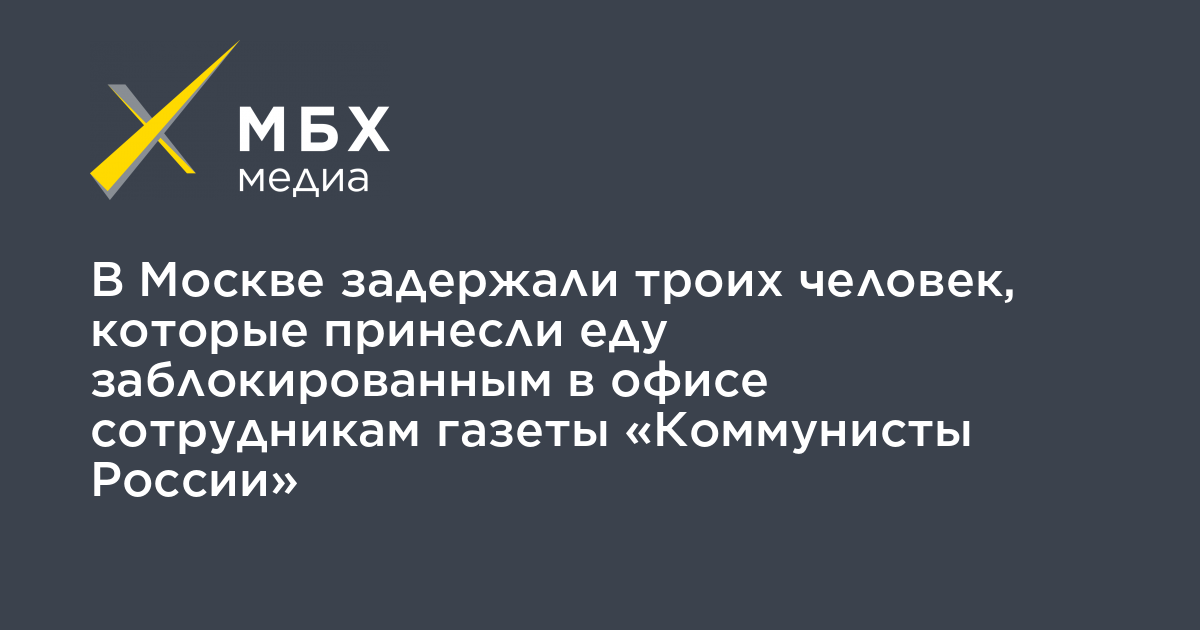 В Москве задержали троих человек, которые принесли еду заблокированным в офисе сотрудникам газеты «Коммунисты России»