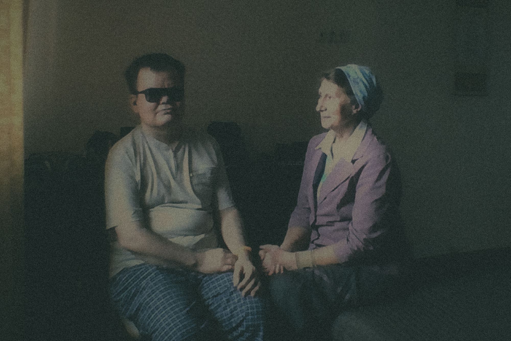 Валентина тонкая, легкая, красивая. Но сидит рядом с мужем как на иголках: все время что-то поправляет или убегает на кухню. На кухне живет ее старенькая сестра Людмила Яковлевна — вдруг что-то ей понадобится? Сестру Валя с Сергеем с Донбасса забрали, когда она ослепла к старости. Так в однокомнатной московской квартире оказалось двое слепых — Сергей (он также почти не слышит) и Людмила Яковлевна. И при них одна зрячая, Валентина. Она много смеется, и, даже когда говорит о грустном, выражение на ее лице детское, светлое, озорное.