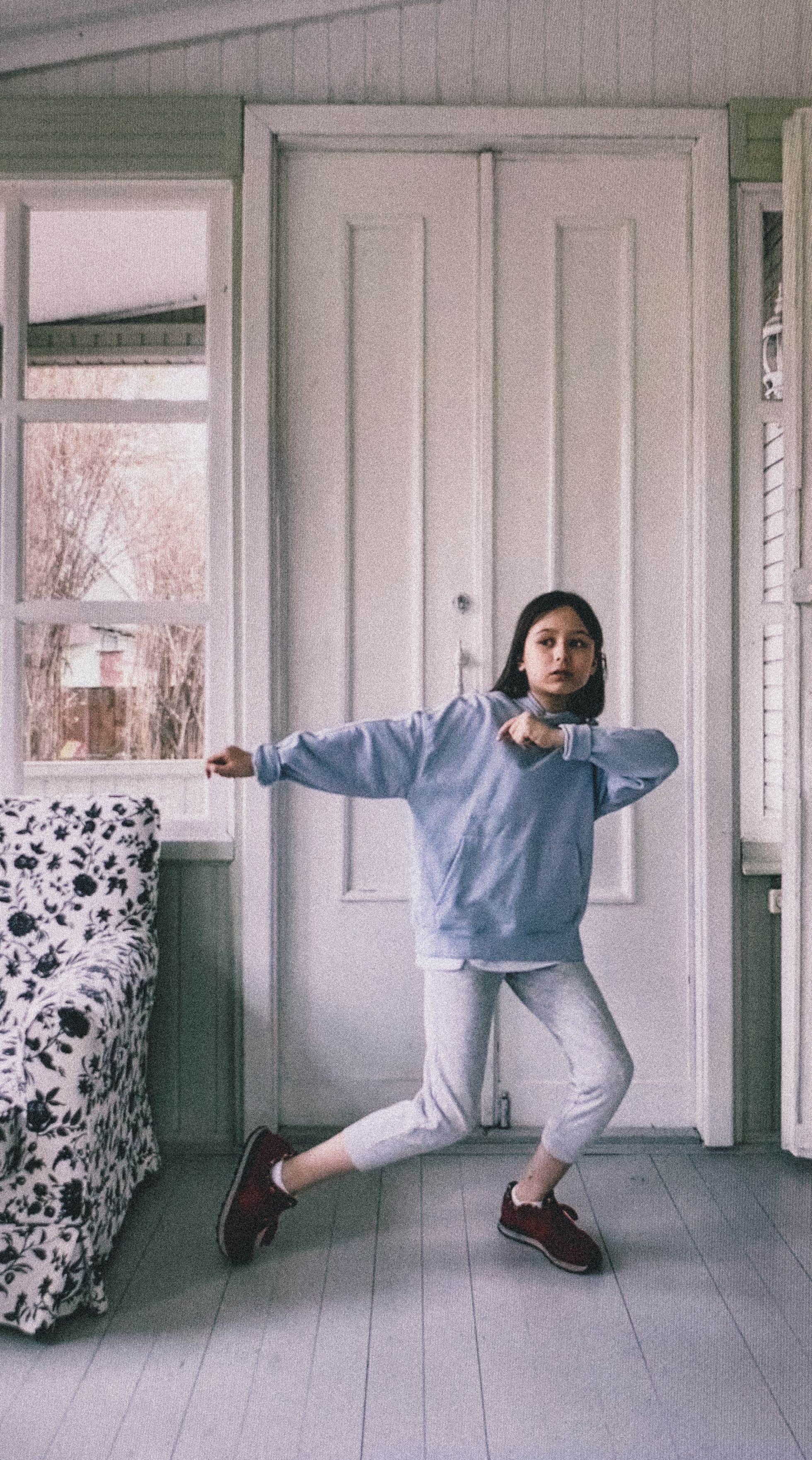 Maria Ionova-Gribina Leia, age 8. At the beginning of March, Leia’s parents bought her a skateboard and arranged for a coach to come to their home twice a week. Then her mother Maria had a colleague get diagnosed with the coronavirus. The whole family was quarantined, and then Moscow declared a city-wide self-isolation regime. As a result, Leia has yet to go skateboarding out on the street. Now she is practicing online for 40 minutes, twice per week — her parents also bought her a balance board for training. Leia dreams of practicing with her coach Misha at the skatepark, where there are small jumps, and she can do different tricks.Maria Ionova-Gribina Kamilla, age 12. Kamilla has been doing rhythmic gymnastics since she was three years old. Her team often takes first place in competitions. She usually practices after her regular school classes five days a week, but on March 25 the sports school closed because of the pandemic. Now Kamilla’s gymnastics lessons, just like her regular classes, are taking place online — for four hours, six days per week. Naturally, it’s impossible to perform many of the “high throws” — the ceilings at home are too low. Now Kamilla hopes that she will be able to go outside in a few months, to meet with her friends and relatives. And that she’ll be able to go to training again too.Maria Ionova-Gribina Miron, age 11. Miron has been playing soccer since he was six years old, and also enjoys scootering. He usually trains with his soccer team five or six times a week. Three weeks ago his training was moved online. His team created a group chat on the messaging app Telegram, where the players are sent a daily exercise program. They have to respond to their coach with a video of the exercises they have completed. Miron doesn’t like online training: sometimes the connection is bad, and his parents (who are working from home) interfere with his exercises — so does the dog.Maria Ionova-Gribina Tanya, age 2 years and 4 months. Tanya has been doing ballet since she turned two. Her classes are now held online, for 45 minutes, twice a week. Tanya is her ballet teacher’s favorite student in her group. She takes her training very seriously — even online, and participates in the entire lesson from beginning to end.Maria Ionova-Gribina Kolya, age 9. Kolya has been playing soccer for four years. In March, his club stopped training, but then it started up again online. Online sessions, like regular training, take place twice a week. But one of them is a theoretical class focused on tactics, as well as analysis of the club’s games, and famous teams. Kolya is also getting his general schooling online, as well as piano lessons. Soon he will leave for the village and he’s glad, because he’ll be able to go walking again. Maria Ionova-Gribina Lev, age 6, and Yan, age 4. Lev has been practicing Taekwondo for four years and Yan has been practicing for two. Lev already has five belts; most recently he got his green belt. Usually, the two boys take lessons at a studio, but because of the coronavirus, their training has been moved online.Maria Ionova-Gribina Izabella, age 13. Izabella has been practicing ballet and other types of dance since she was five years old. She usually goes to the dance studio six times a week. Classes last two to four hours, and she also practices at home. A month ago the dance studio closed for quarantine — there were no online classes for the first two weeks, so Izabella practiced using YouTube videos. Now she’s taking her dance classes via Zoom — the students repeat the movements, and the teacher observes and corrects them, “right hip a little higher, lower your hands a little.”Maria Ionova-Gribina Pelageya, age 7. For a year and a half Pelageya has been practicing and performing jazz-modern dance. Now the children in her group are being sent their lessons on Instagram, their parents record a video as the students repeat all the movements, and then send it to the dance teacher, who responds with comments. Pelageya does not like this set up — she likes going to classies with her friends. Now she can only go for walks out on the balcony. She doesn’t like the balcony either, because it’s “not a real street.”Maria Ionova-Gribina Polina, age 11. Polina has been practicing dance since she was three years old, and is in her second year of hip-hop. Now her classes are taking place online, but for Polina it’s easier to practice live — you can ask questions quickly and you don’t have to wait while “they turn on the sound [so they can] hear you.” Polina says that she is not afraid of catching the coronavirus herself, but is worried for her parents because “this virus has a stronger effect on older people.” Polina misses walking around Moscow, and has already told her parents that as soon as the quarantine ends, she is immediately going to go out for a six-hour walk.Maria Ionova-Gribina Nikola, age 7. Nikola has been dancing in a song and dance ensemble for the last year and a half. He has online classes three times a week, and also needs to do homework to learn new movements and dances. Nikola likes the online training, but likes going to the Pioneers Palace (the youth center for extracurriculars) more, because it’s more spacious. When the quarantine ends, Nikola wants to go to school right away, he misses it a lot.Maria Ionova-Gribina Alisa, age 7. Alisa has been practicing ballet since she was three years old. Now she has online classes twice a week and does ballet homework every day. At the beginning of April, Alisa had her birthday. She hopes that when the pandemic is over, she will be able to celebrate it with her friends at an adventure park.