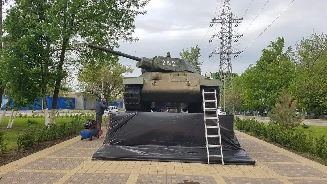 В Ростове-на-Дону дуло мемориального танка во время ремонта повернули в сторону Запада