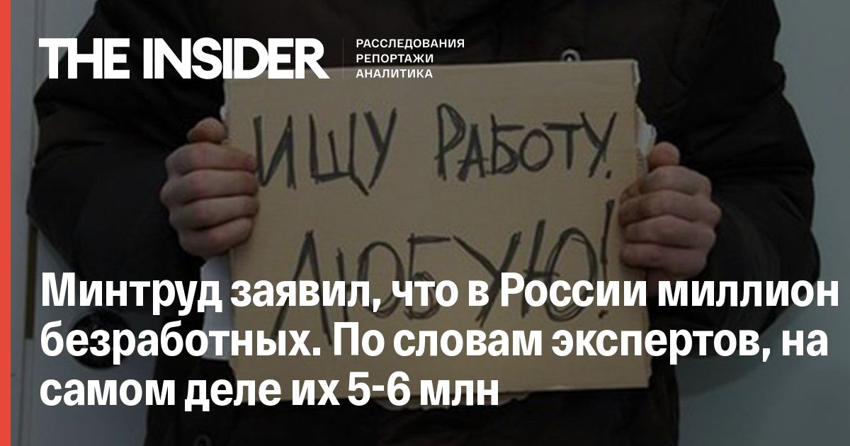 Минтруд заявил, что в России миллион безработных. По словам экспертов, на самом деле их 5-6 млн