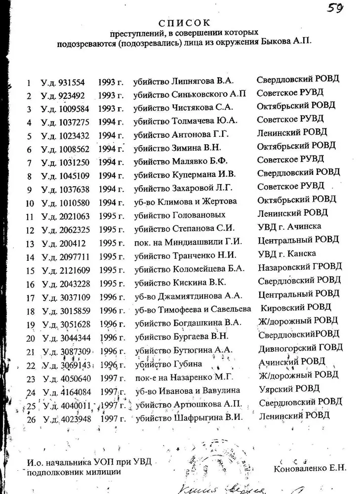 Еще раз: это лишь эпизод. Когда в 90-х писал о симпатиях милицейских генералов к Быкову и их покровительстве ему, они пробовали судиться и выкатывали — даже они, кормившиеся у Быкова с рук, — бумаги о том, что подозревают окружение Быкова в десятках убийств, похищений, массовых расстрелов.