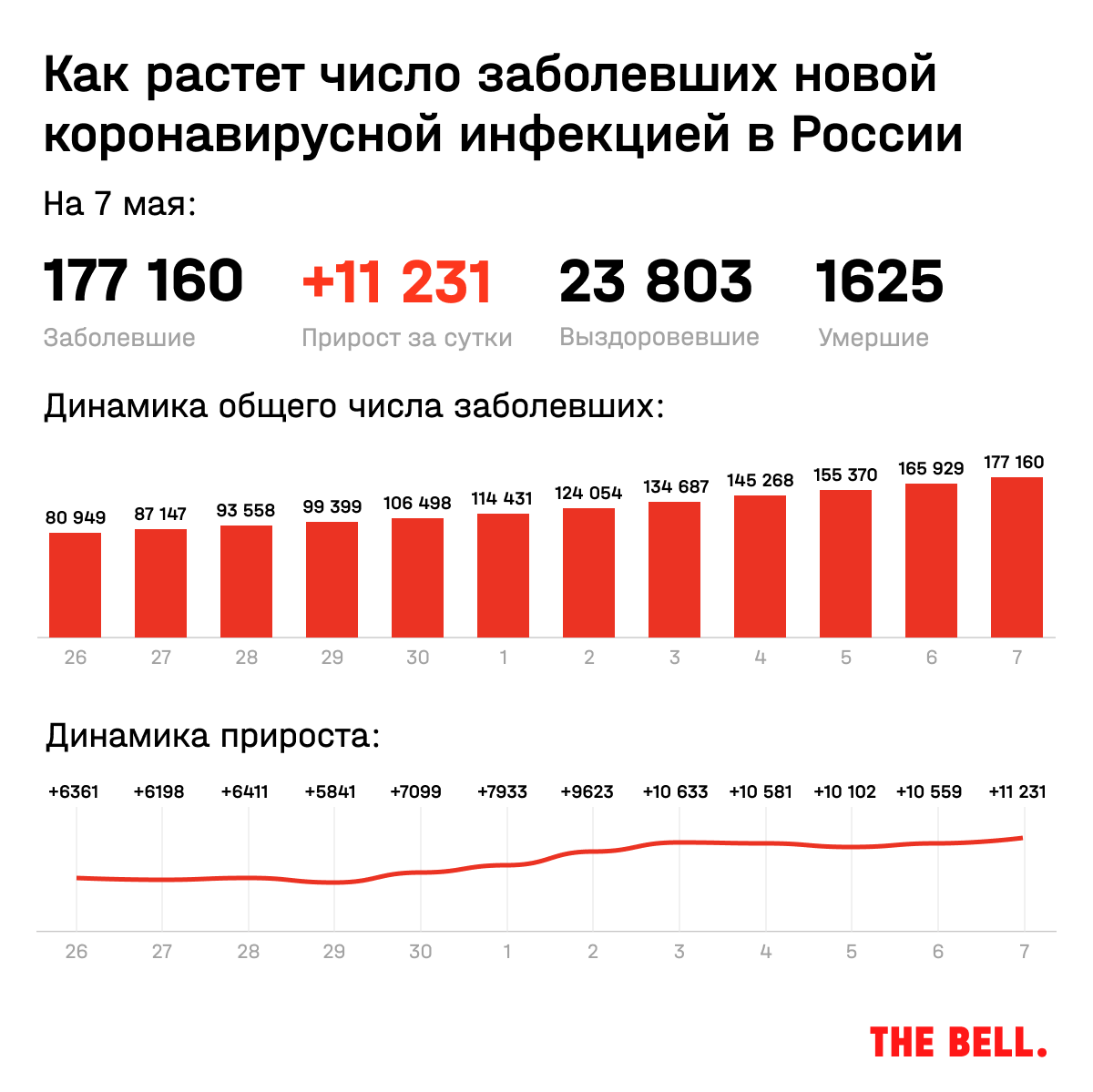 Новых заразившихся за сутки 11 231 человек, всего с начала пандемии — 177 160.