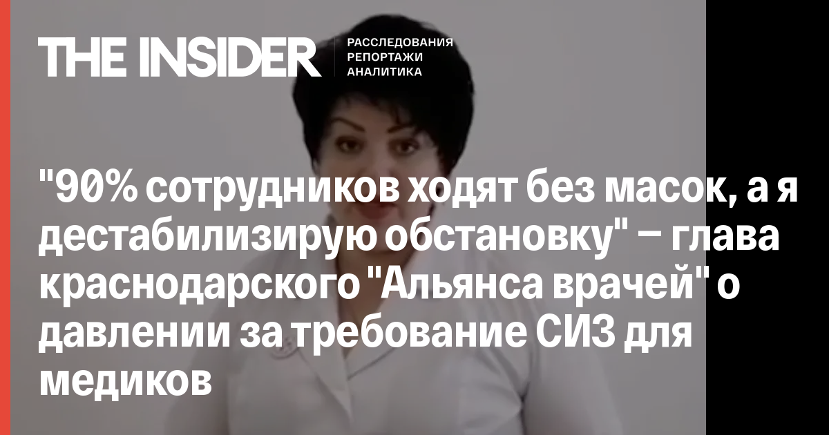 "90% сотрудников ходят без масок, а я дестабилизирую обстановку" — глава краснодарского "Альянса врачей" о давлении за требование СИЗ для медиков