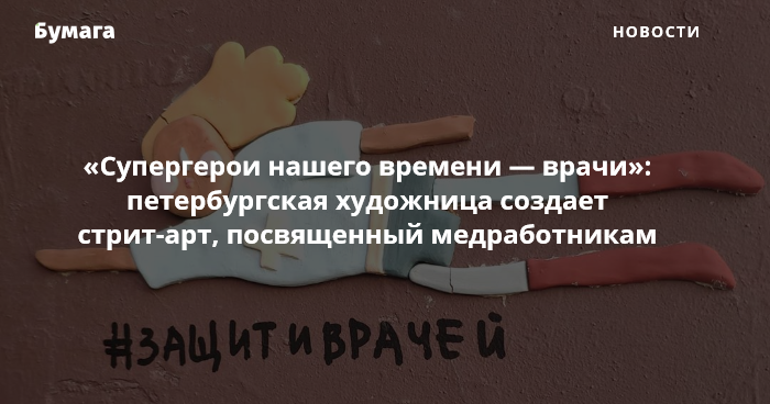 Художница VandaLizy, которая с начала декабря 2019 года создает в Петербурге рельефный стрит-арт, показала новые работы в инстаграме. Она размещает на стенах фигурки врачей, которых показывает в образе супергероев.
