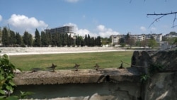 Спустившись от Малахова кургана, пересекаю улицу Истомина. Здесь прямо у пешеходного перехода установлен чугунный куб с четырьмя пушечными ядрами сверху. Надпись гласит, что именно в этом месте проходила оборонительная линия. Прошагав сто метров до перекрестка с улицей Полтавской, упираюсь в стадион российского ЦСКА – Центрального спортивного клуба армии.