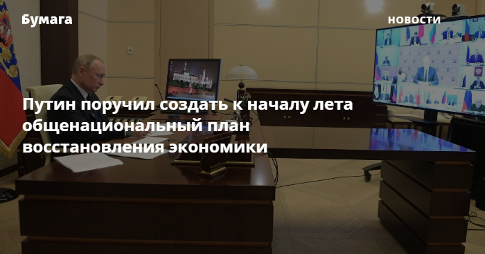 Президент Владимир Путин поручил правительству России разработать и представить к 1 июня общенациональный план восстановления экономики. Об этом сообщается на сайте Кремля.