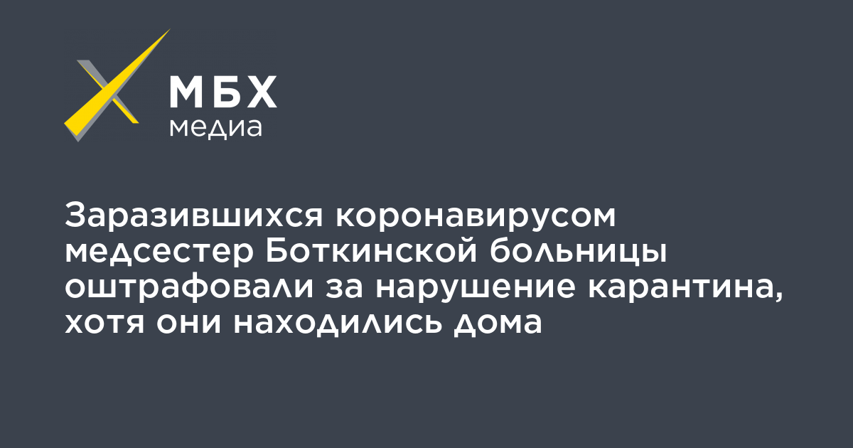 Как минимум двух заразившихся коронавирусом медсестер, работающих в Государственной клинической больнице имени Боткина, оштрафовали на 16 тысяч рублей за нарушение карантина. Об этом они рассказали «МБХ медиа».