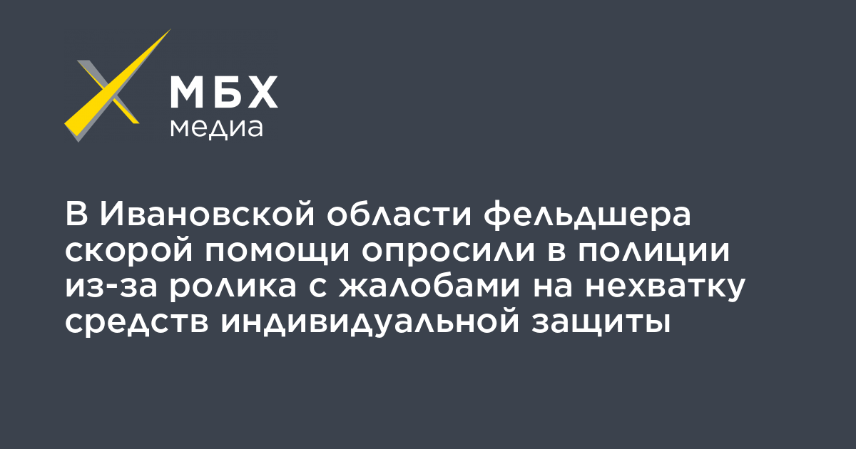 В Ивановской области фельдшера скорой помощи опросили в полиции из-за ролика с жалобами на нехватку средств индивидуальной защиты
