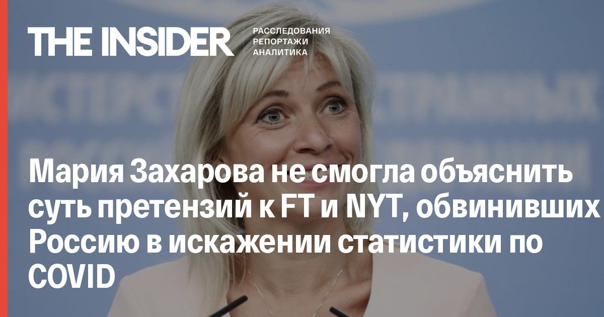 Мария Захарова, ранее грозившая ответными мерами против изданий Financial Times и The New York Times за статьи о манипуляции с коронавирусной статистикой, не смогла разъяснить, что именно в статьях не соответствует действительности. Как она пояснила The Insider, ее возмутило то, что в статьях не представлена официальная позиция России, хотя в обоих материалах разбиралась именно официальная российская статистика. Она также отказалась комментировать причину не соблюдения Россией рекомендаций ВОЗ по ведению такой статистики, сославшись на то, что это не компетенция МИД.