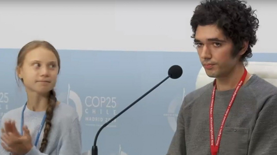 — Я был в Мадриде на Международных переговорах по климату, жил в каком-то профсоюзе. Мне выделили место, где можно было спать на полу. Когда Грета приехала в первый раз в Мадрид, у нас была молчаливая забастовка внутри здания, где шли переговоры. Никому не говорили, что Грета приедет. Она присоединилась к нашей забастовке, а после ее сразу окружили журналисты, и с ней даже поздороваться было нельзя. Меня позвали участвовать в конференции с Гретой, я с ней познакомился, но не могу сказать, что мы много общались, потому что огромное внимание было уделено Грете. Для меня было волнительно выступать там и говорить речь, особенно когда мне только за день до этого сказали, что есть такая возможность.